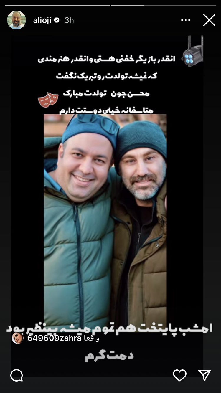 به گزارش بهداشت نیوز، علی اوجی در صفحه اینستاگرامش برای تولد محسن تنابنده همزمان با پایان سریال پایتخت 7 یک استوری منتشر کرد.