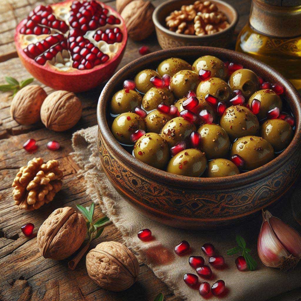 هر ۱۰۰ گرم زیتون پرورده چند کالری دارد؟ حدود ۱۸۰ تا ۲۲۰ کیلوکالری؛ بسته به میزان گردو و رب انار.