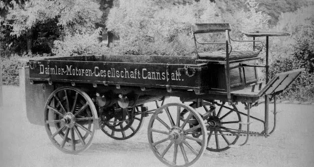 گوتلیب دایملر در سال ۱۸۸۵ میلادی، «رایت‌واگن» را ساخت که به‌عنوان اولین موتورسیکلت واقعی جهان شناخته می‌شود. این دوچرخ چوبی با یک موتور احتراق داخلی تک‌سیلندر کار می‌کرد. اما دایملر به همین اکتفا نکرد و یک دهه بعد، در سال ۱۸۹۶، همان فناوری موتور را برای ساخت اولین کامیون جهان به‌کار برد.