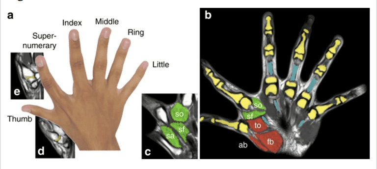 نتایج حاصل از مطالعهی MRI بر روی انگشت اضافه نشان داده است که این