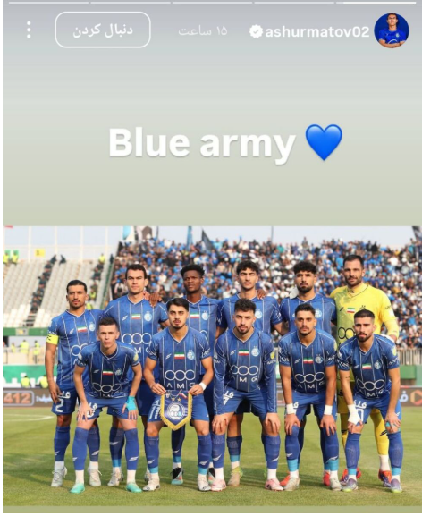 در همین راستا رستم آشورماتوف مدافع ازبکستانی استقلال که حالا تکلیف تیم ملی کشورش در مرحله گروهی جام جهانی ۲۰۲۶ هم مشخص شده، دقایقی قبل با انتشار یک عکس تیمی از استقلال قبل از آغاز دربی پایتخت، به این تیم لقب «ارتش آبی» داد و یک قلب آبی هم کنارش گذاشت تا علاقه خود به استقلال را نشان بدهد. او همچنین در فضای مجازی از طرفداران استقلال بابت حمایتشان نیز تشکر کرد.