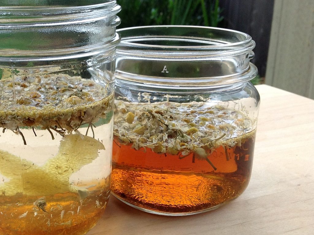 ۱:۱ با اتانول %۴۵)، به میزان ۴-۱ میلیلیتر، ۳ بار در روز - تنتور بابونه (به نسبت ۱:۵ با اتانول